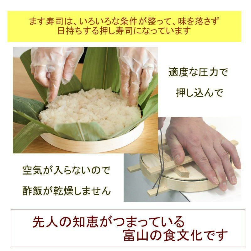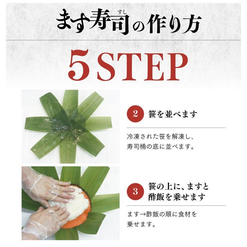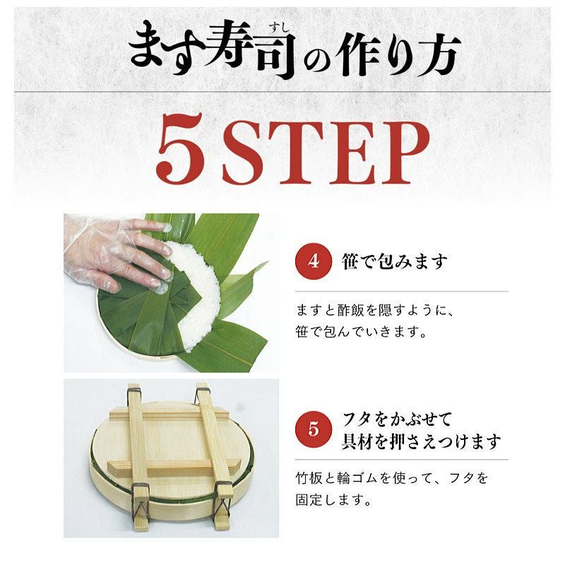 旨味ます寿司魚シート/酢飯/寿司桶(木桶)・フタ/笹パック/竹板4本/寿司用輪ゴム4つ/ビニール手袋